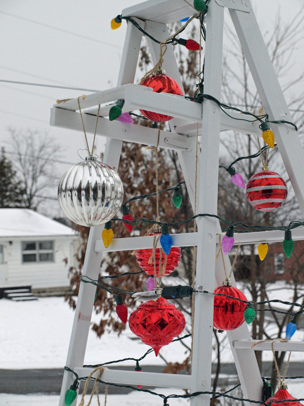 This Christmas decoration is simpler than you think. Just place the ladder and decorate it with the lights of your choice. Hang the ornaments and decorate with some other stuff, if you wish. Even without too much, this decor is simple and looks quite traditional as well.