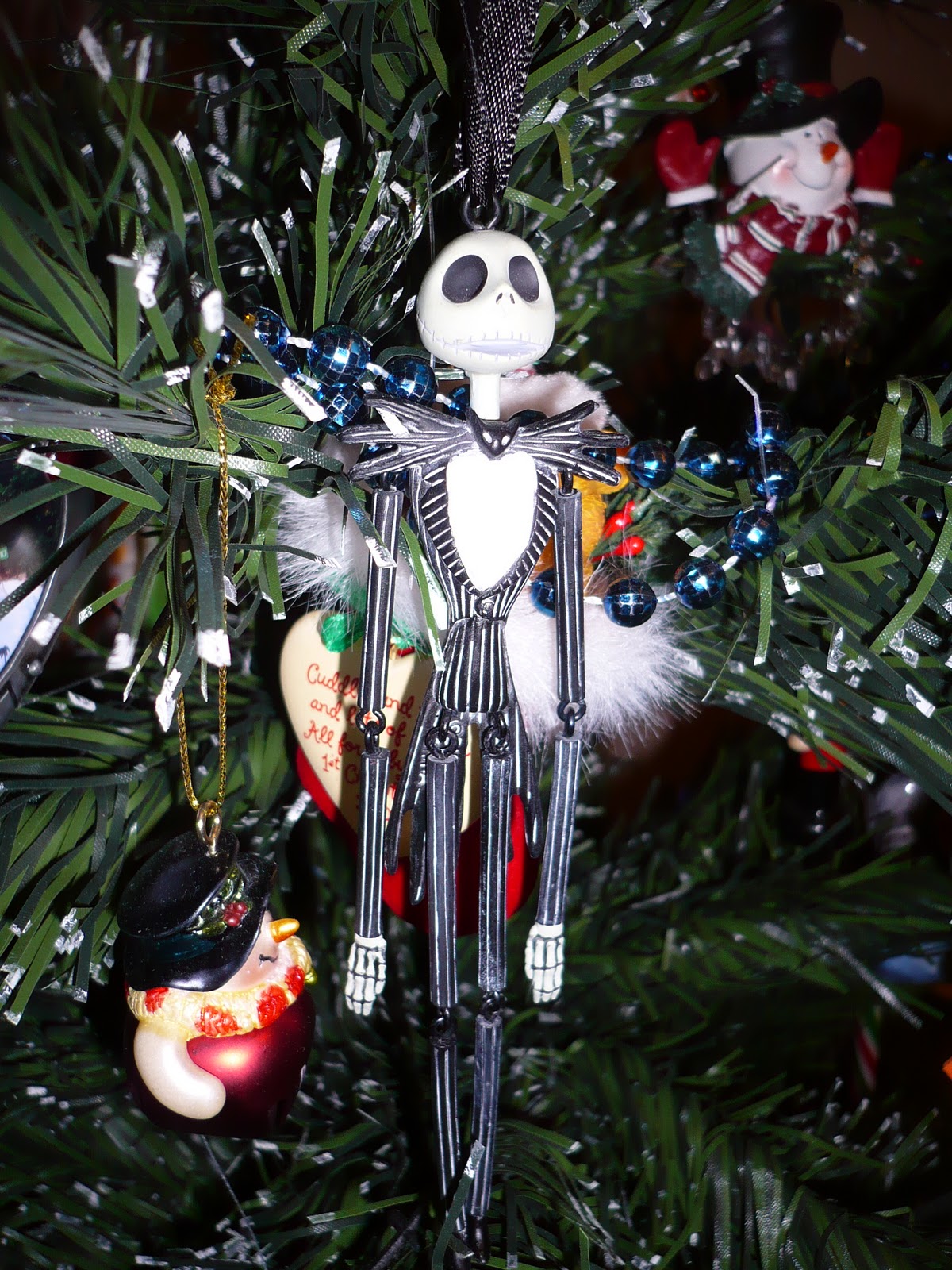 The Nightmare Before Christmas on the tree. This one is totally horrifyingly beautiful! The cuteness of snowflakes and Christmas baubles tamed the spookiness of Jack Skellington hanging around the Christmas tree. Love it!