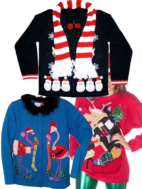 Elegant color and a tacky design for the ultimate Christmas party fun!