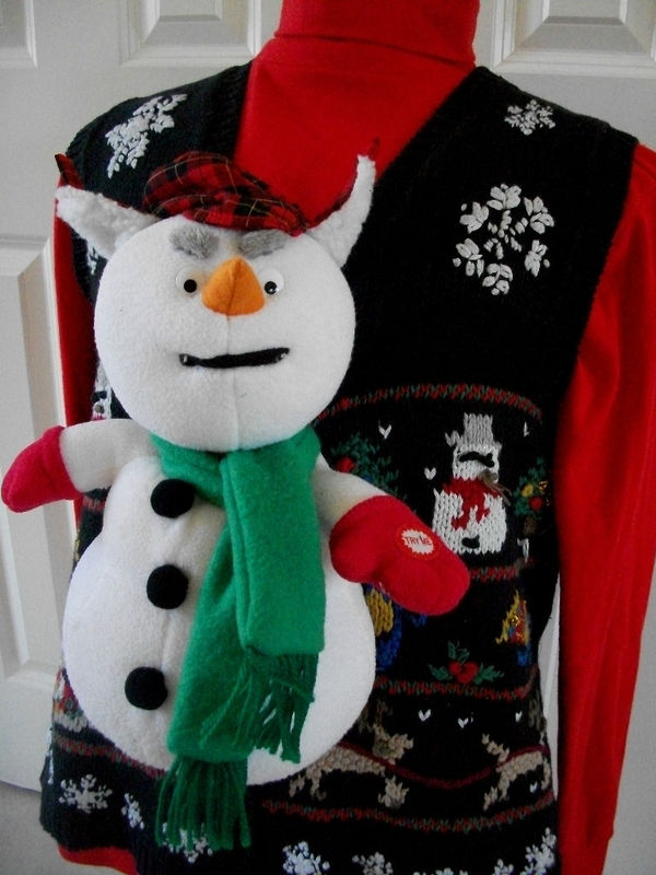 An ugly design with snowman design. The tacky design will certainly catch the attention of many!