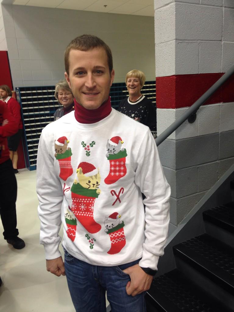 A wonderful design in tacky Christmas sweaters for the cat lovers.