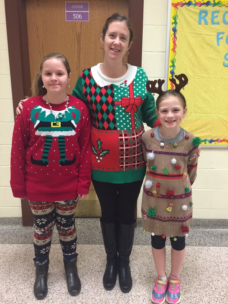 It’s a wonderful choice of tacky Christmas sweaters for the whole family. Loved the reindeer hairband as well!